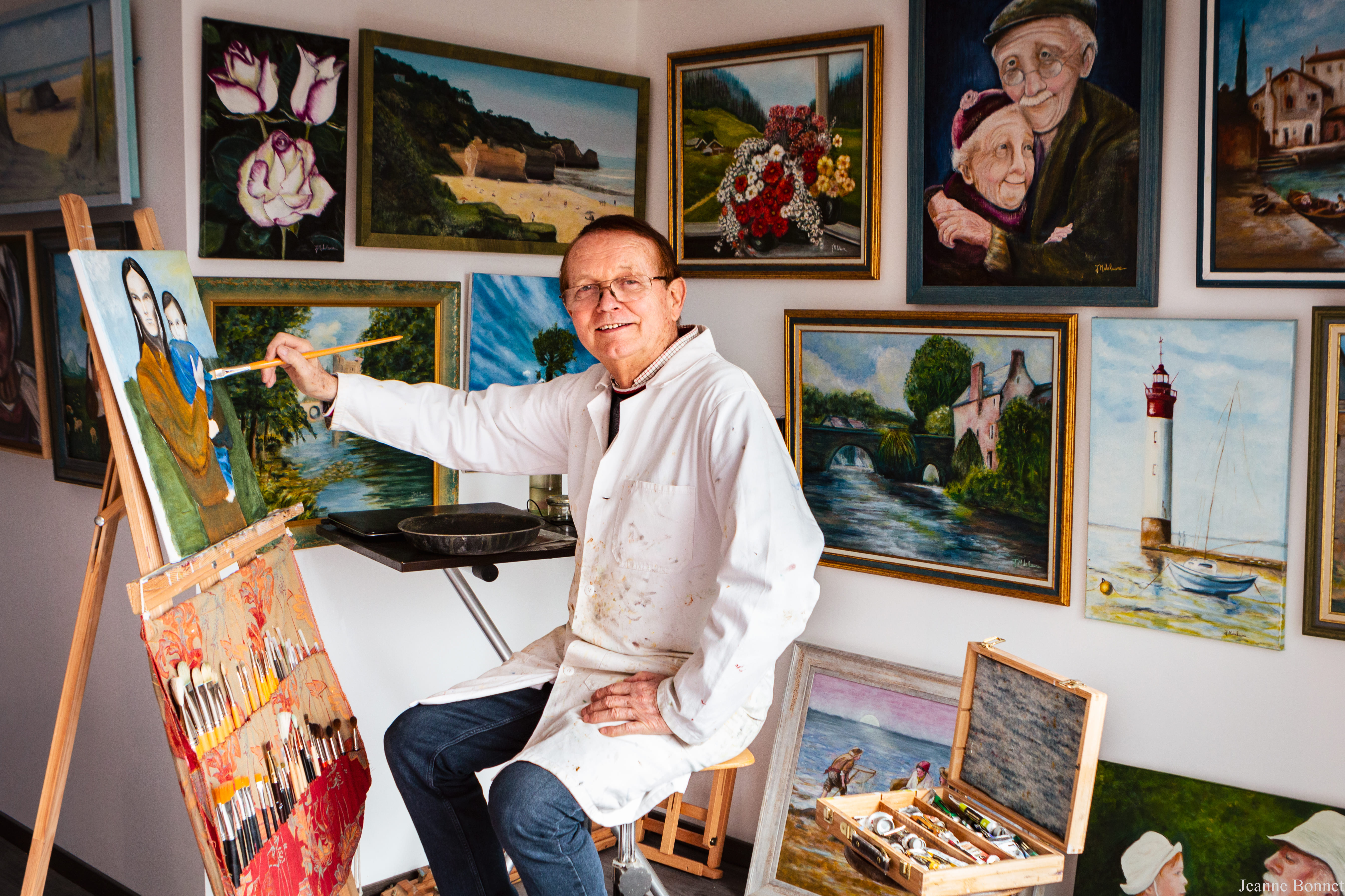 Jean-Marie LELAURE dit Jimel a commencé sa vie professionnelle comme Apprenti peintre décorateur, il a acquis de nombreuses techniques et de connaissances grâce à la transmission d’un vieux peintre qui était son patron … Dans les années 70, il a commencé la peinture à l’huile sur toile, mais pris par sa vie professionnelle, cela restait un loisir occasionnel. À la retraite, il a pu enfin s’épanouir pleinement à travers sa passion de la peinture. Ainsi, il a suivi des cours avec le peintre Michel Quent pendant 7 ans et, ou il a beaucoup appris grâce à la rigueur de ce peintre , il a ensuite poursuivi avec le peintre Jipé bien connu dans la Sarthe et les départements environnants, ce qui lui a permis de confirmé son identité artistique . Ces années lui ont permis d’acquérir toutes les bases et s’affirmer dans la peinture sur toile. Son domaine de prédilection reste la peinture figurative, mais n'est pas indifférent aux autres modèles existants. Il participe depuis plusieurs années à diverses expositions artistiques de la région, et reçoit le 1er prix du public à l’exposition d’Allonnes (49) en 2019, le 1er prix scolaire à Mûrs Erigné en 2023, des sélections dans des expositions réputées… Il fait également partie depuis le début de l’année 2022 du groupement des Artistes Ligériens dont le siège est aux Ponts de Cé (49), ce groupement est bien connu dans la région et comprend une cinquantaine d'artistes motivés. Sa philosophie est de penser que la peinture est une des meilleures thérapies pour rester zen ! C’est la meilleure façon pour lui de s’exprimer artistiquement.